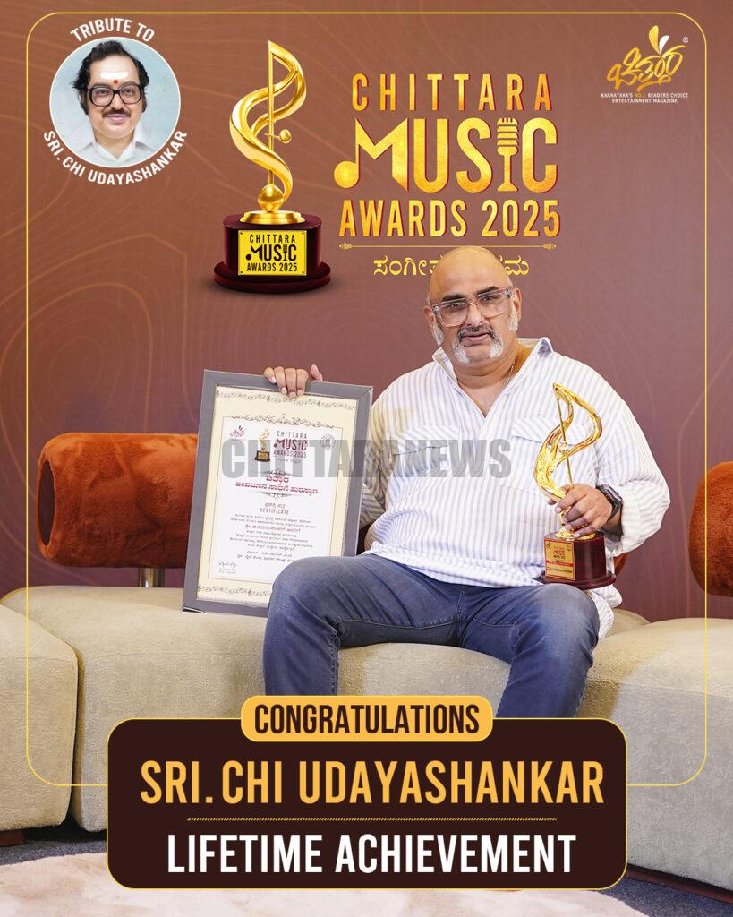 ಈ ಮಹಾನ್ ಸಾಧಕರ ಸಾಧನೆಯನ್ನು ಸ್ಮರಿಸುತ್ತಾ, ಇಂದು ‘ಚಿತ್ತಾರ ಮ್ಯೂಸಿಕಲ್ ಅವಾರ್ಡ್ಸ್ – 2025′ ಕಾರ್ಯಕ್ರಮದಲ್ಲಿ ದಿವಂಗತ ಚಿ.ಉದಯ್ ಶಂಕರ್ ಅವರಿಗೆ ಮರಣೋತ್ತರ ‘Lifetime Achievement’ ಪ್ರಶಸ್ತಿ ನೀಡಿದ ಸೌಭಾಗ್ಯ ಚಿತ್ತಾರ ತಂಡದಾಗಿತ್ತು.